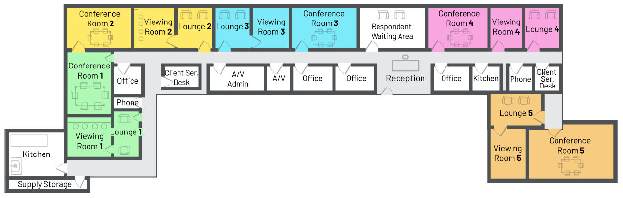 Whether your project is consumer-, healthcare-, or business-based our facility has the flexibility to meet your needs. A large, well-equipped kitchen makes CLTs or taste tests a breeze, and our largest room accommodates up to 60 participants theater-style. With access to a loading dock and great building security, research here is hassle-free.